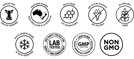 Our like-supports-like nutrition product line is always from Grass Fed, inspected animals born and raised without the use of pesticides, hormones or antibiotics. Health of livestock used for manufacturing in New Zealand & Australia is closely monitored by a world-leading biosecurity system that is second to none, and is a global exemplar. Strict government licensing, auditing and certification procedures mean that our genuine New Zealand & Australia freeze-dried products can be used with complete confidence in their origin, safety and efficacy. Freeze-drying preserves the heat-sensitive vitamins, minerals and co-factors of components leaving the nutrients in the same balance as found in nature.